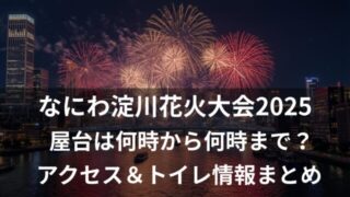花火大会 なにわ淀川花火大会2025屋台は何時から何時まで?アクセス&トイレ情報まとめ 毎年8月に行われている”なにわ淀川花火大会”、今年は秋開催になっています。開催日は2025年10月18日(土)、の打ち上げ開始時間は19時30分から60分間です。この”なにわ淀川花火大会”は来場者数45万人と言われており、大阪でもっとも人気... 2025.10.04 花火大会